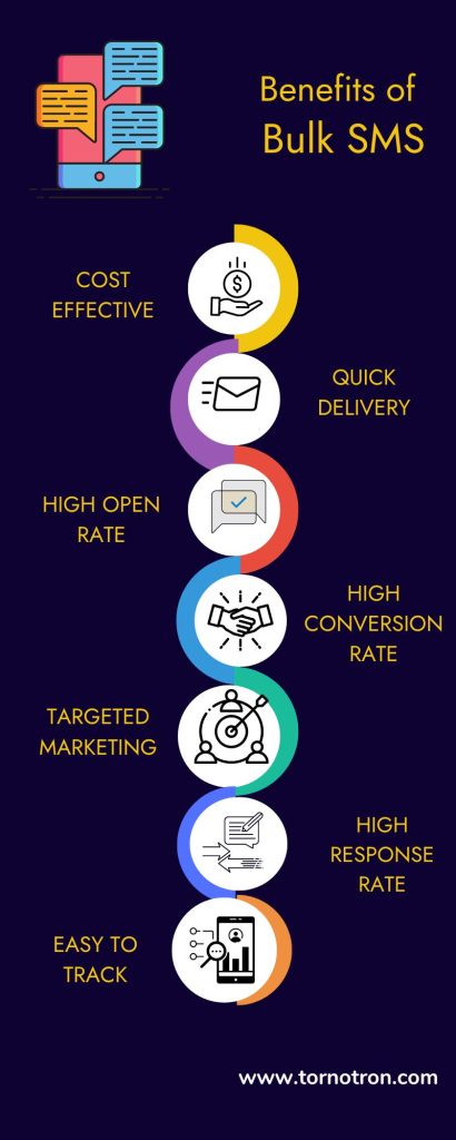 Cost-effective: Bulk SMS marketing is a cost-effective way to reach a large audience. Compared to other forms of marketing such as television, radio, and print ads, bulk SMS marketing is relatively cheap.